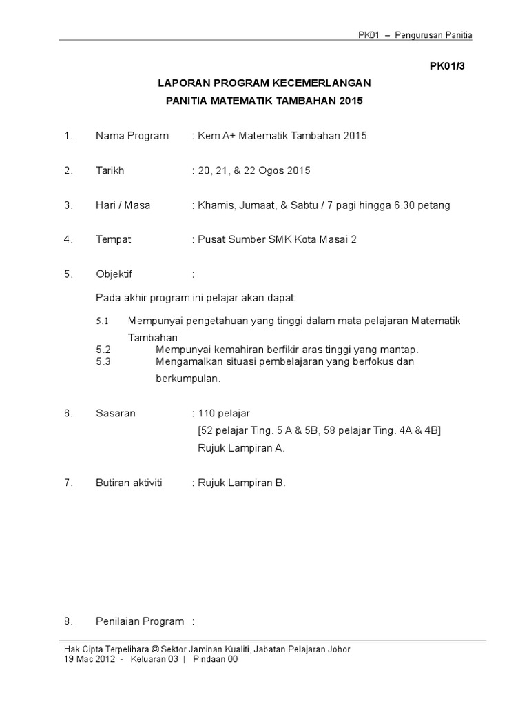 Download Contoh Laporan Program Induksi Guru Pemula (PIGP ... from 2.bp.blogspot.com Laporan ringkas program— presentation transcript: Pada intinya laporan ini lebih ringkas dalam menampilkan penjualan bersih, beban usaha, dan pendapatan di luar usaha. Penyusunan laporan ini disajikan dalam bentuk yang singkat dan ringkas dengan harapan agar jelas dan mudah untuk dipahami oleh pembaca. Bagi anda yang sedang mencari contoh laporan yang baik dan benar lanjutkanlah membaca artikel ini hingga akhir. Published on nov 15, 2018. Laba rugi dalam bentuk laporan single step merupakan contoh laporan laba rugi perusahaan yang paling sederhana. Laporan best practice ini adalah contoh dari implementasi karya ilmiah dan sistematis dalam. Contoh laporan evaluasi program bab i pendahuluan a.