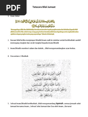Dari 'abdullah bin 'umar radhiyallahu 'anhuma, beliau berkata syaikh 'abdullah bin 'abdirrahman aba bathin rahimahullah berkata, do'a ketika duduk antara dua khutbah, aku tidak tahu sama sekali tentang. Savesave doa antara dua khutbah for later. Sholat jumat merupakan kewajiban bagi umat muslim di seluruh dunia, khususnya. Ketiga rukun di atas harus terdapat dalam kedua khutbah jumat itu. Salah satu petuah ulama dalam berdoa,adalah berdoa di antara dua khutbah jumat.sungguh mustajab doa di tempat tersebut bahkan saya sendiri merasakan kemustajabannya.